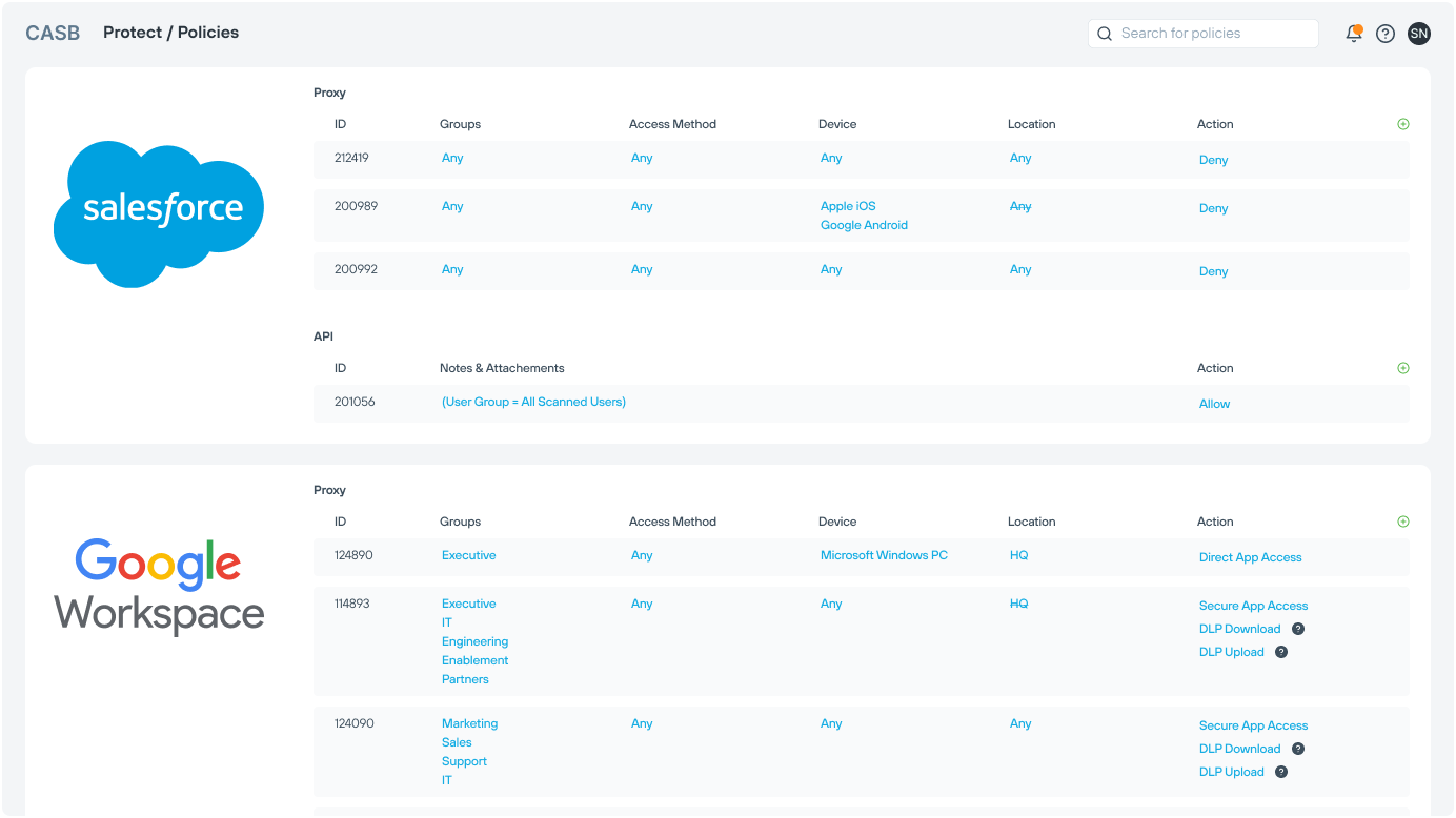 Kombinieren Sie die Funktionen von DSPM, DLP, DDR, CASB und SWG auf einer Plattform.