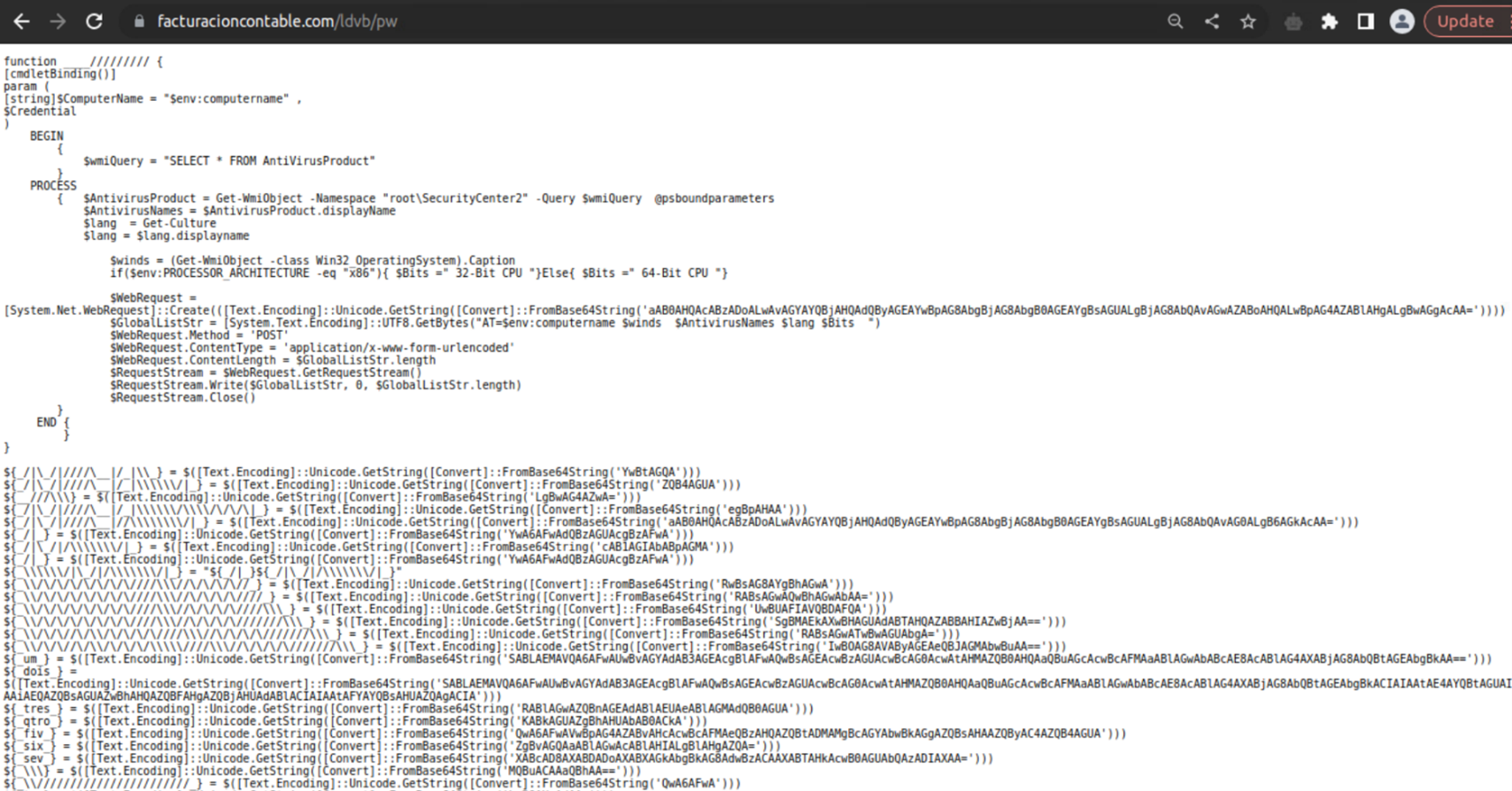 Also, PowerShell connects to “hxxps://facturacioncontable[.]com/m[.]zip“ and downloads a zip file which contains multiple files.