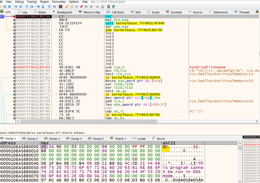 - Este DLL desempacota outro payload DLL de estágio na memória: