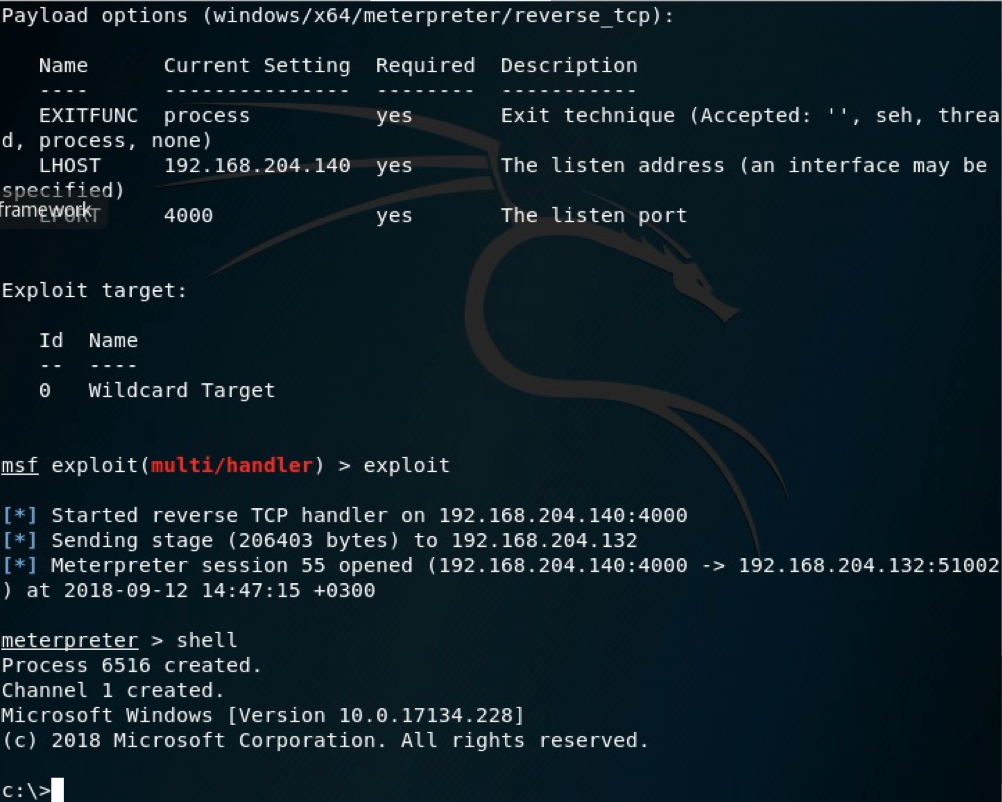 At this point the shellcode at the victim communicates with the C&C server, and C&C server operator has control over the victim. Figure 2 shows the operator’s remote shell running on the victim.